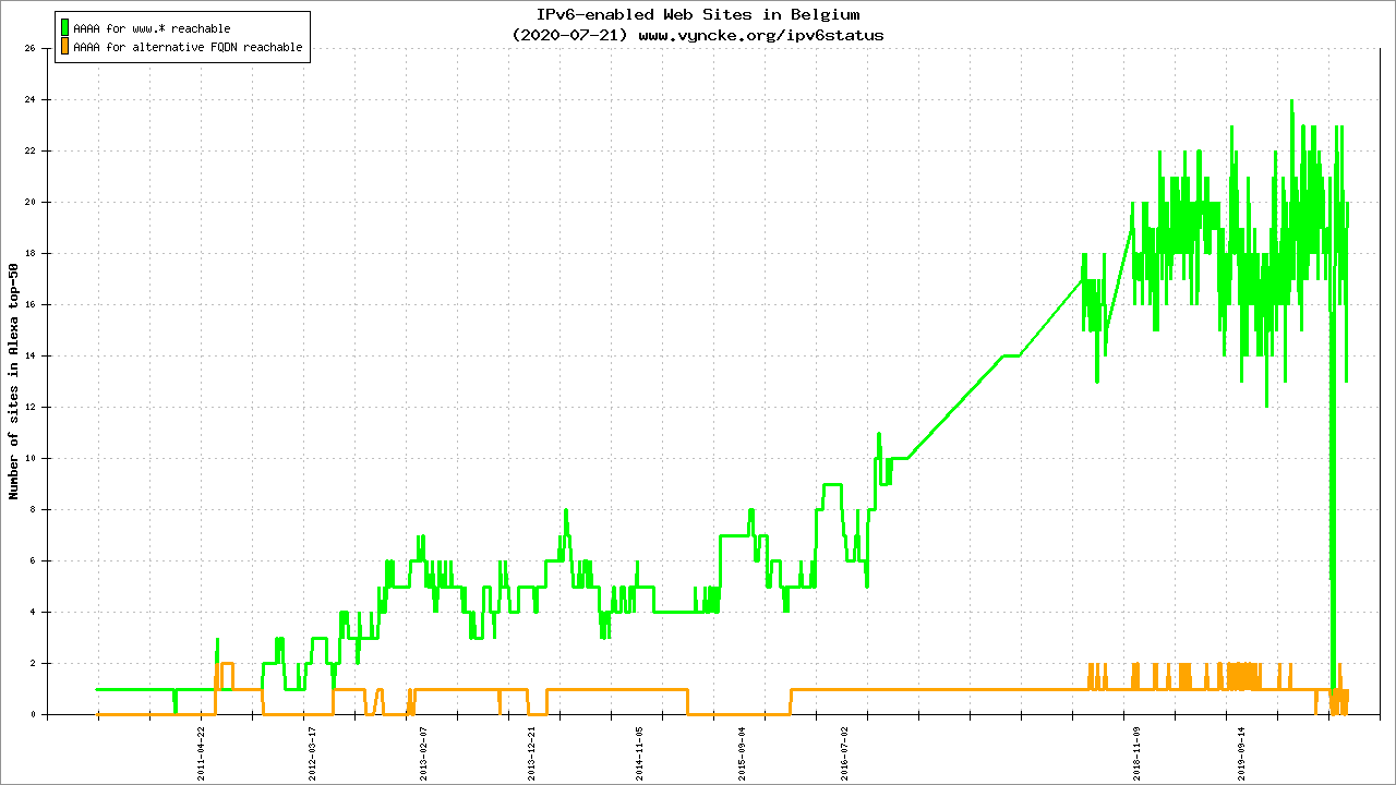 圖3 比利時TOP 50網站IPv6支持數量趨勢